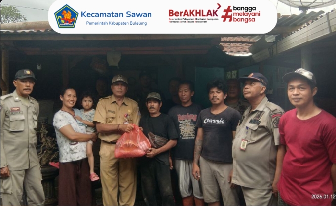 Hari ini Senin, 12 Januari 2026 Camat Sawan, I Ketut Cantyana, SP, didampingi Kasi Satpol PP Kecamatan Sawan beserta staf, melaksanakan kegiatan pemantauan bencana tanah longsor yang terjadi di wilayah Kecamatan Sawan, tepatnya di tiga desa.
