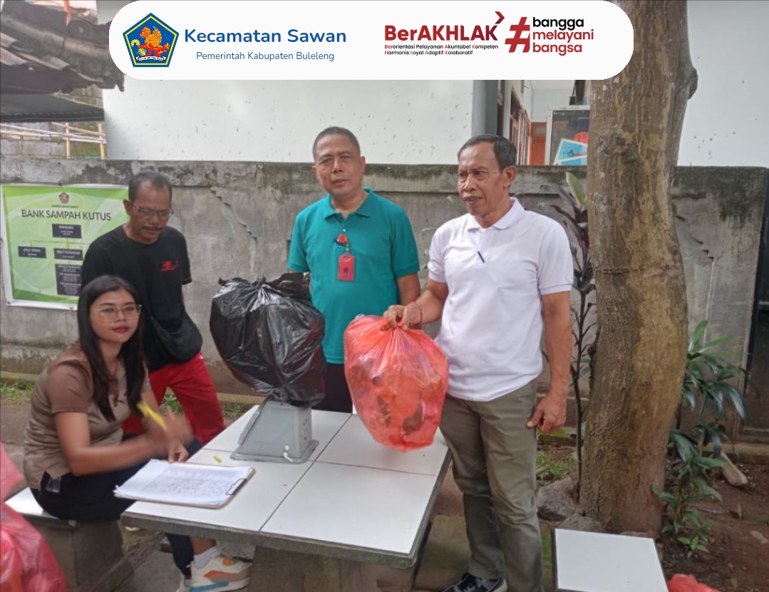 Hari ini rabu, 24 desember 2025 Seluruh pegawai Kantor Camat Sawan secara rutin melaksanakan kegiatan timbang sampah di Sekretariat Bank Sampah Unit Kutus, Kantor Camat Sawan. Kegiatan ini dilaksanakan dua kali dalam seminggu, yaitu setiap hari Rabu dan Jumat, sebagai bentuk komitmen bersama dalam menjaga kebersihan lingkungan dan mendukung pengelolaan sampah berbasis partisipasi.