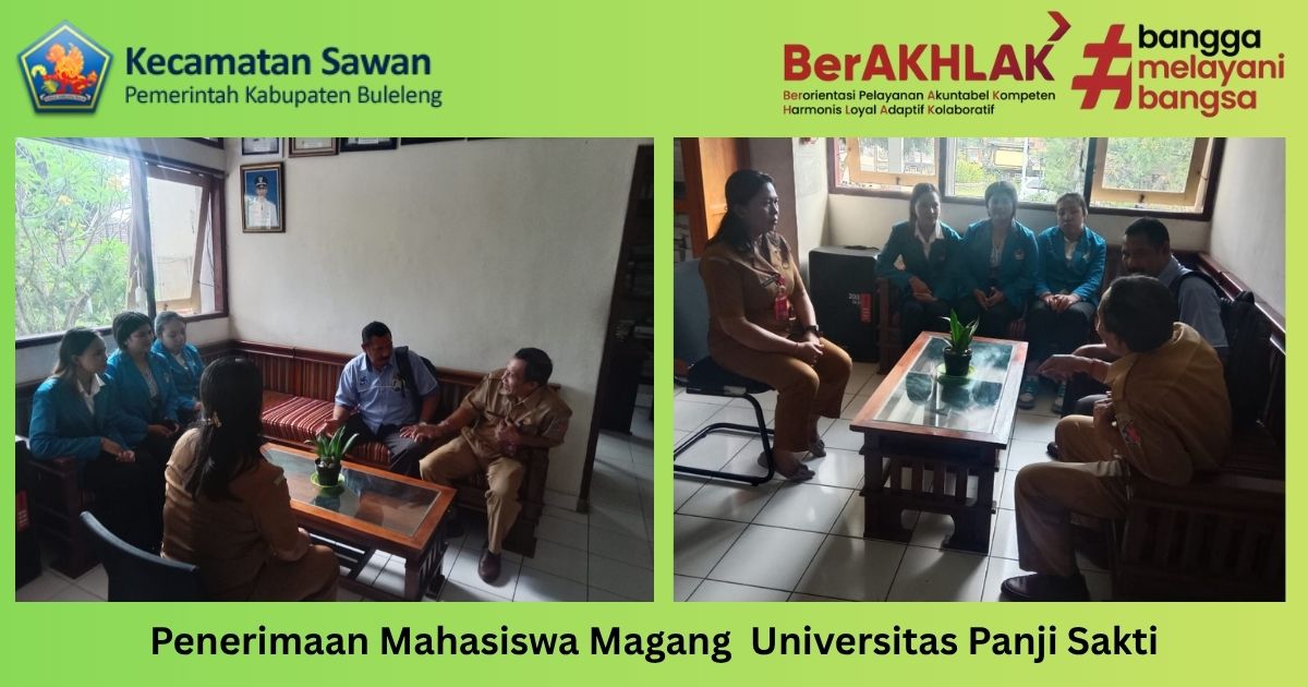 Hari ini senin, 13 oktober 2025 Kasi Sosial Budaya Kecamatan Sawan I Gede Dana Yasa, S,Sos bersama Kasubag Umum dan Keuangan Kecamatan Sawan Luh Karyani, S.Sos menerima penyerahan mahasiswa Praktek Kerja Lapangan ( PKL) Program Studi Administrasi Publik Universitas Panji Sakti bertempat di Ruang Tamu Kantor Camat Sawan.