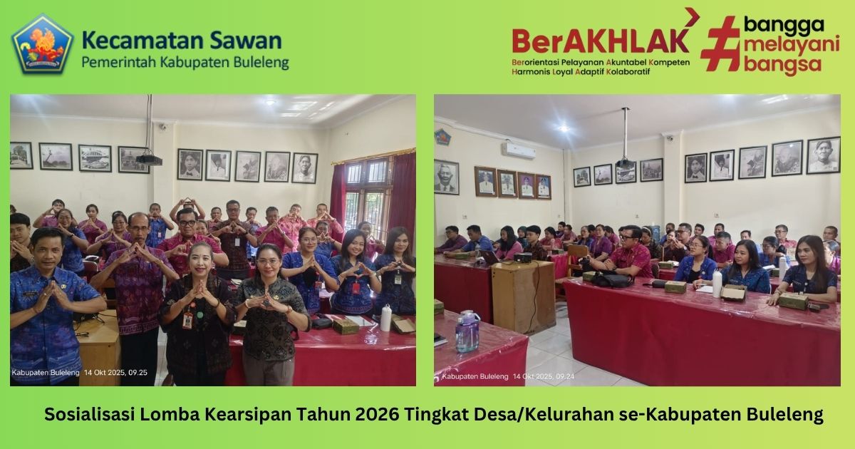 Dari Kecamatan Sawan Desa Giri Emas yang akan menjadi perwakilan dari Kecamatan Sawan dalam lomba Kearsipan Tingkat Desa/Kelurahan Tahun 2026. Dimana lomba ini berfokus pada pengelolaan arsip dinamis (penciptaan, penggunaan dan pemeliharaan serta penyusutan arsip).