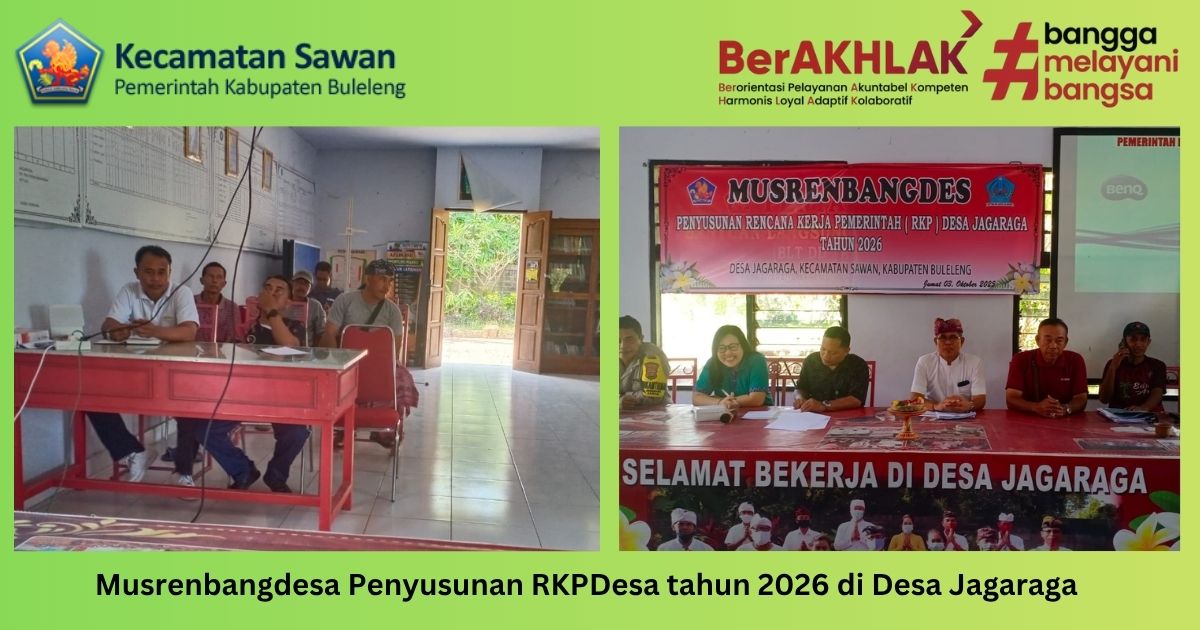 Hari ini jumat, 3 oktober 2025 Kasi Pembangunan Kecamatan Sawan Wayan Mahayasa hadiri Musyawarah Desa Perencanaan Pembangunan Desa sebagai bagian dari proses penyusunan Rencana Kerja Pemerintah Desa (RKP Desa) Tahun 2026 di Desa Jagaraga. Kegiatan ini dilaksanakan sebagai forum partisipatif yang melibatkan berbagai unsur masyarakat desa, mulai dari perangkat desa, Badan Permusyawaratan Desa (BPD), Babinsa, Babinkamtibmas, Pendamping Desa, tokoh masyarakat, tokoh agama.
