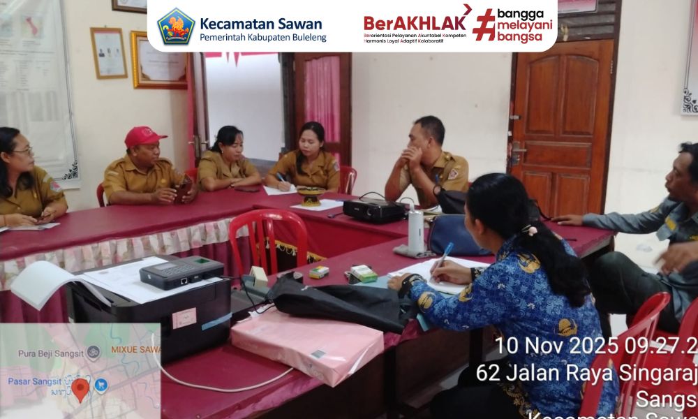 Hari ini senin, 10 november 2025 Staf Seksi Pemerintahan Kecamatan Sawan Luh Rupini, S.Sos melakukan Monitoring Realisasi APBDesa Tahun 2025 di Desa Sangsit dan Desa Bungkulan. Kegiatan ini dilaksanakan dalam rangka memastikan penggunaan dana sesuai rencana pada APBDesa tahun 2025, meningkatan transparansi, akuntabilitas dan mengindentifikasi kendala yang ada di kedua desa.