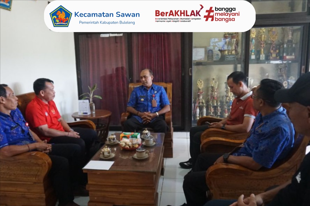 Hari ini Selasa, 6 Januari 2026, Camat Sawan I Ketut Cantyana, SP, didampingi oleh Kasi Sosial Kecamatan Sawan I Gede Dana Yasa, S.Sos menerima kunjungan dari Komite Olahraga Nasional Indonesia (KONI) Kecamatan Sawan. Kegiatan tersebut berlangsung di Ruang Kerja Camat Sawan.
