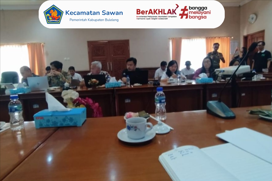 Hari ini selasa, 23 desember 2025 Kasubag Perencanaan dan Kasi Pembangunan Kecamatan Sawan menghadiri Rapat Koordinasi (Rakor) Air Baku Air Minum yang diselenggarakan dalam rangka penguatan sinergi lintas sektor untuk pemenuhan kebutuhan air minum di Kabupaten Buleleng.