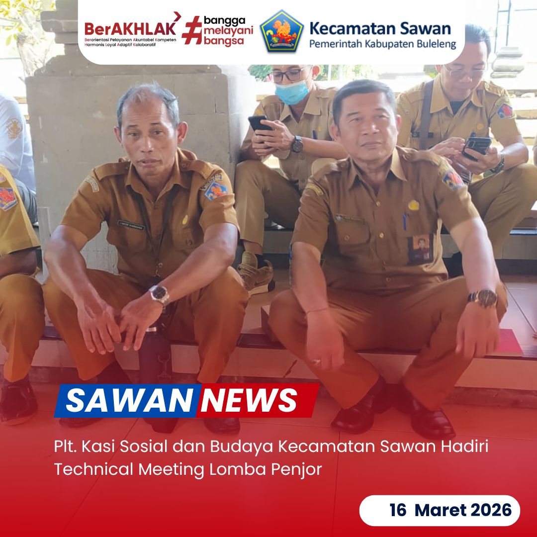 Hari ini Senin, 16 Maret 2026 Plt. Kasi Sosial dan Budaya Kecamatan Sawan, Gede Mudiarsa, S.Sos, menghadiri rapat technical meeting lomba penjor yang dilaksanakan sebagai bagian dari rangkaian kegiatan budaya. Rapat tersebut membahas berbagai ketentuan dan persiapan yang harus diperhatikan oleh para peserta lomba.