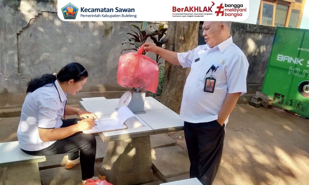Hari ini rabu, 12 november 2025 seluruh pegawai di lingkungan kantor camat melakukan timbang sampah di sekretariat Bank Sampah Unit Kantor Camat Sawan. Kegiatan ini dilaksanakan karena sampah yang sering kali dipandang sebagai “musuh” bagi sebagian orang, kini dapat membawa banyak manfaat. Dengan adanya gerakan/program Bank Sampah yang ada di Kecamatan Sawan, sampah menjadi sesuatu yang memiliki nilai.