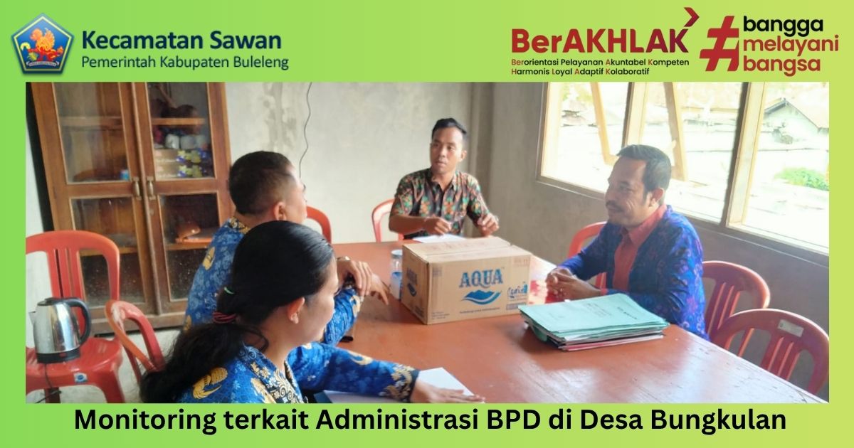 Hari ini selasa, 28 Oktober 2025 Kasi Pemerintahan Made Suastika, S.Sos bersama staf melakukan Monitoring terkait Administrasi BPD di Desa Bungkulan. Dalam monitoring ini diterima oleh anggota BPD Desa Bungkulan.