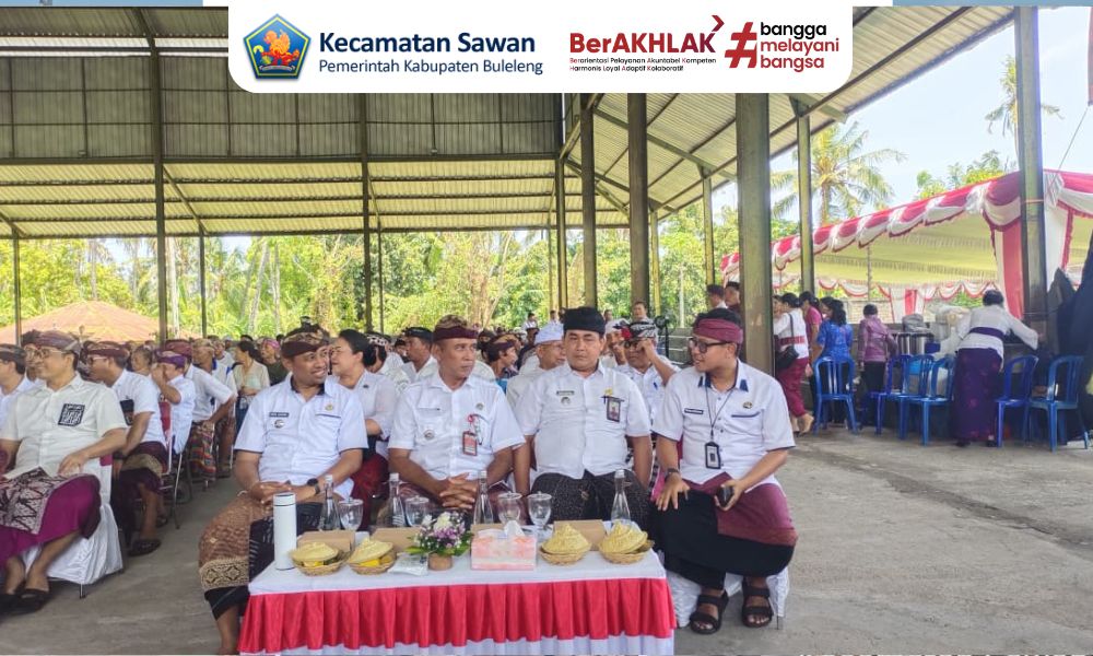 Dalam kunjungan kerja ini dari Dinas Kependudukan dan Pencatatan Sipil Kabupaten Buleleng membuka pelayanan administrasi kependudukan ( adminduk ) serta dalam acara penyerahan bantuan yang diberikan berasal dari beberapa OPD yang ada di Kabupaten Buleleng. Selain itu juga ada penyerahan simbolis penerimaan bantuan bangunan rumah, 50 paket sembako untuk lansia dan penyandang disabilitas, susu kemasan dancow 1+ 100 gr untuk balita berisiko stunting usia 1-3 tahun sejumlah 8 kotak untuk kecamatan sawan, penyerahan simbolis hibah untuk pembelian mesin pra panen cultivator, penyerahan simbolis hibah untuk pengadaan bibit babi, bantuan kursi roda dan penyerahan bantuan tongkat ketiak.