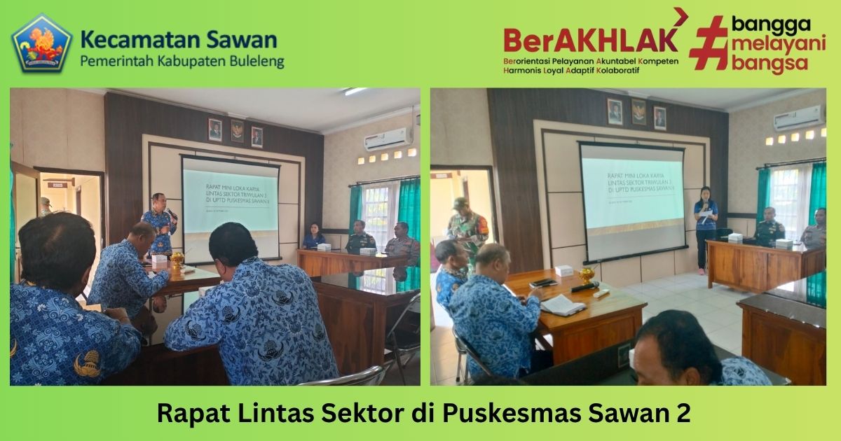 Hari ini selasa, 28 oktober 2025 Kasi Sosial dan Budaya Kecamatan Sawan I Gede Dana Yasa, S.Sos menghadiri pertemuan mini loka karya lintas sektoral di UPTD Puskesmas Sawan 2. Kegiatan kali ini dihadiri pihak kepolisian, TNI. Tokoh Agama, Perbekel dan Dinas Pertanian. Kegiatan ini bertujuan membahas, mengevaluasi, dan merencanakan berbagai program kesehatan, seperti peningkatan kesehatan ibu dan anak, pencegahan penyakit menular, penanganan stunting, dan lain-lain, guna meningkatkan pelayanan dan derajat kesehatan masyarakat secara menyeluruh.