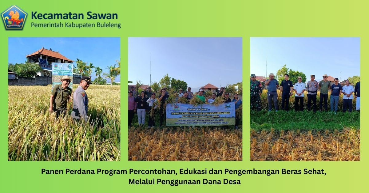 Hari ini rabu, 3 september 2025 Camat Sawan I Made Wirama Satria, SE menghadiri undangan Panen Perdana Program Percontohan, Edukasi dan Pengembangan Beras Sehat, Melalui Penggunaan Dana Desa di Desa Giri Emas. Kegiatan ini dalam mendukung program ketahanan pangan kerjasama BUMDES LABDA JAYA dengan KPPA BHUMI MESARI.