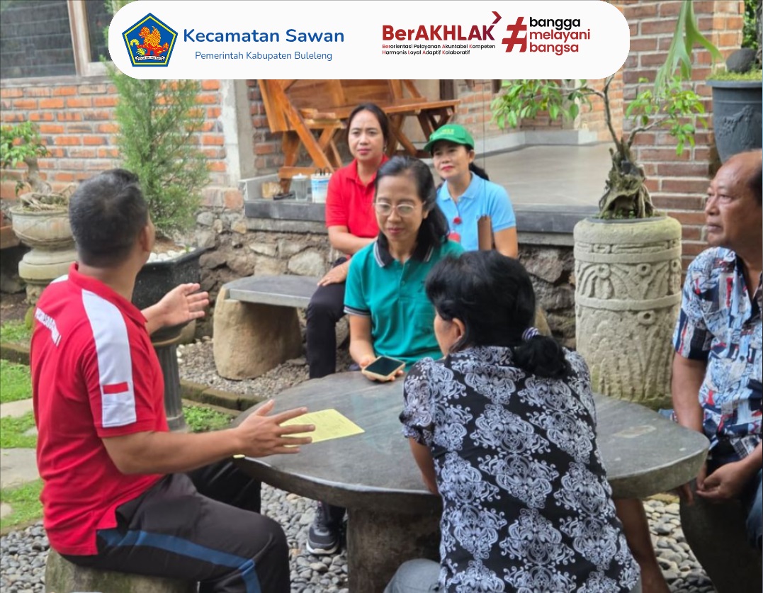 Kegiatan ini turut didampingi oleh Kasi Pelayanan Administrasi Terpadu Kecamatan Sawan Luh Rupini, S.Sos serta Kasubag Umum dan Keuangan Kecamatan Sawan Luh Karyani, S.Sos. Kunjungan tersebut bertujuan untuk memastikan kesiapan administrasi, kebersihan lingkungan, serta penerapan indikator Pengelolaan Sampah Berbasis Sumber (PSBS) pada rumah tangga yang akan menjadi sampel penilaian.