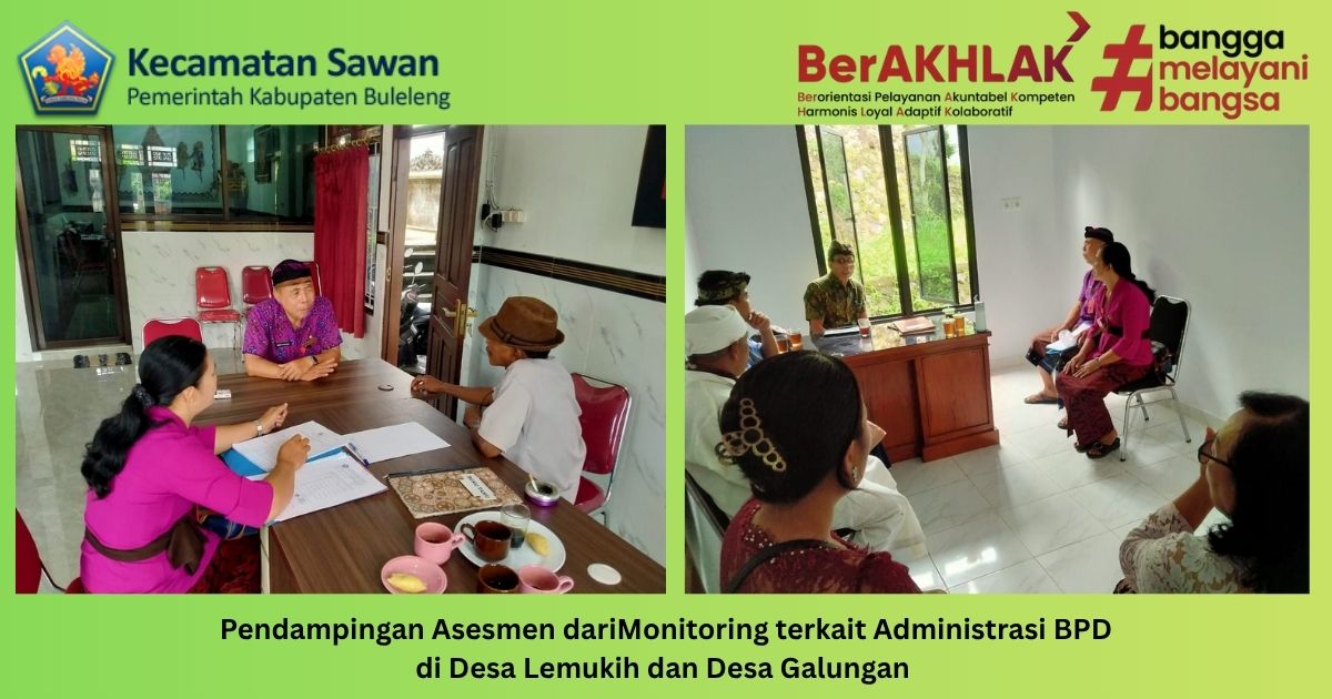 Hari ini kamis, 23 oktober 2025 Kasi Pemerintahan Kecamatan Sawan Made Suastika, S.Sos bersama staf melakukan monitoring terkait Administrasi BPD di Desa Lemukih dan Desa Galungan. Dalam monitoring diterima langsung perwakilan dari BPD dan perangkat desa.