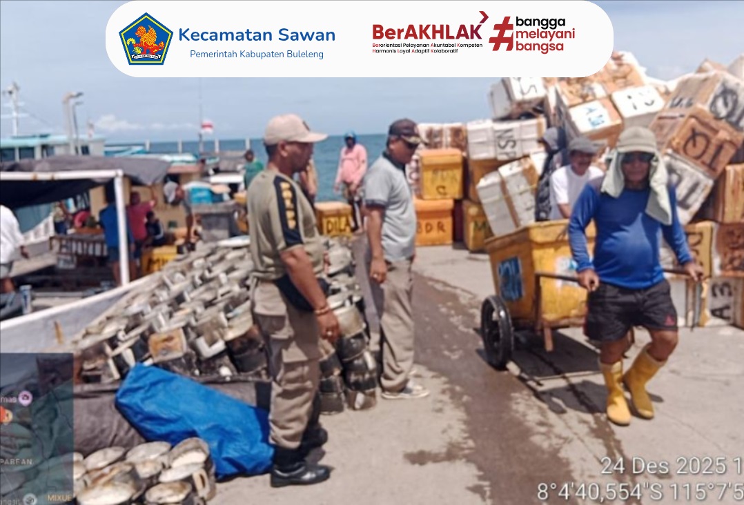 Hari ini Rabu, 24 Desember 2025 Staf Seksi Ketenteraman dan Ketertiban Umum (Trantib) bersama anggota Satuan Polisi Pamong Praja (Pol PP) Kecamatan Sawan melaksanakan kegiatan pemantauan kapal yang berlabuh di Pelabuhan PPI Desa Sangsit, Kecamatan Sawan.