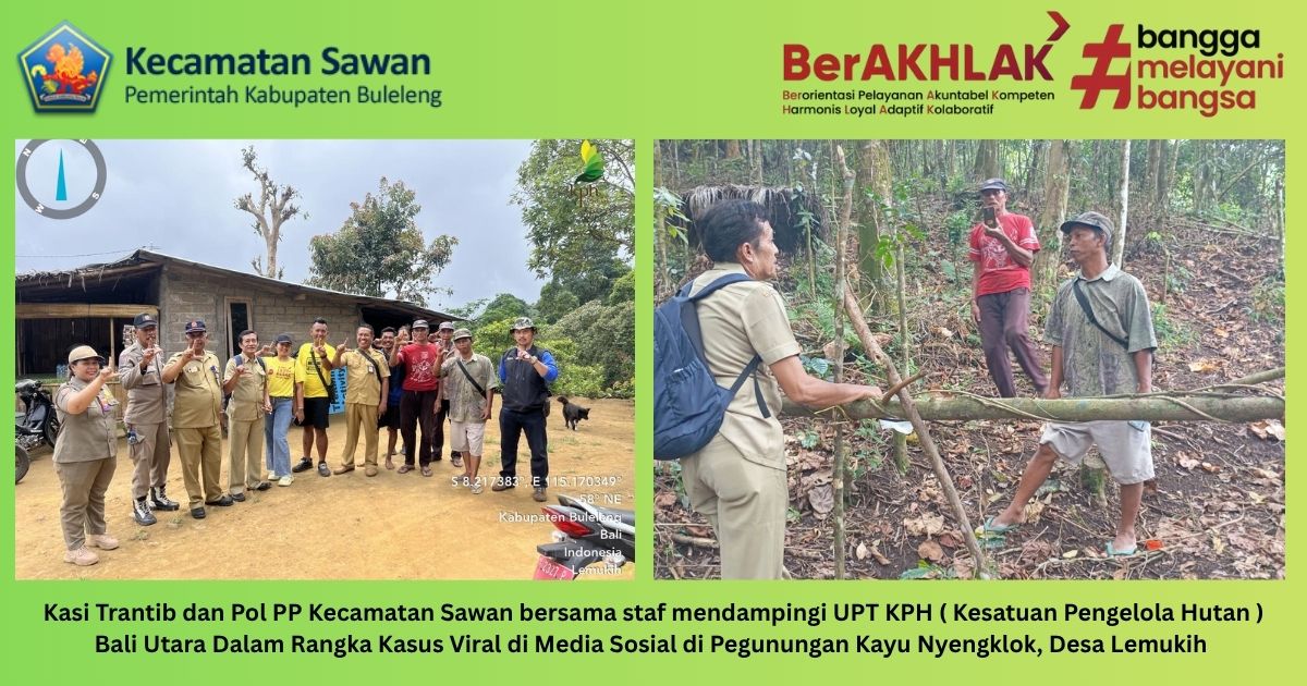 Hari ini senin, 13 oktober 2025 Kasi Trantib dan Pol PP Kecamatan Sawan Made Sutiastawa, SH bersama staf mendampingi UPT KPH ( Kesatuan Pengelola Hutan ) Bali Utara melakukan pemantauan di Pegunungan Kayu Nyengklok, Desa Lemukih dalam rangka kasus pembatatan hutan yang viral di media sosial.