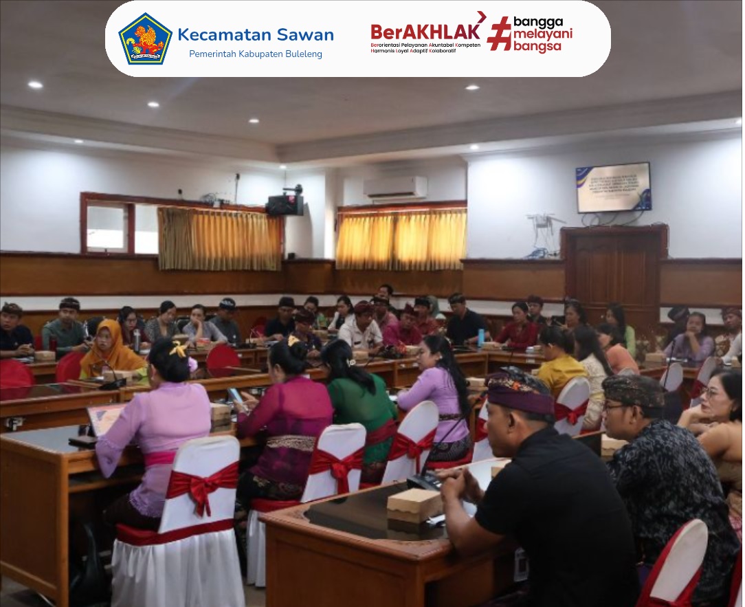 Hari ini Kamis, 12 Februari 2026, Sekretaris Camat (Sekcam) Sawan, Gde Agus Ngurah Suryawan, S.Sos menghadiri kegiatan Sosialisasi Rancangan Peraturan Bupati tentang Hari Kerja dan Jam Kerja Perangkat Daerah dan Pegawai Aparatur Sipil Negara di Lingkungan Pemerintah Kabupaten Buleleng. Kegiatan tersebut juga dirangkaikan dengan Sosialisasi Tata Naskah Dinas di Lingkungan Pemerintah Daerah Kabupaten Buleleng serta pemaparan Peraturan Bupati Buleleng Nomor 59 Tahun 2025 tentang Tata Naskah Dinas di Lingkungan Pemerintah Daerah.