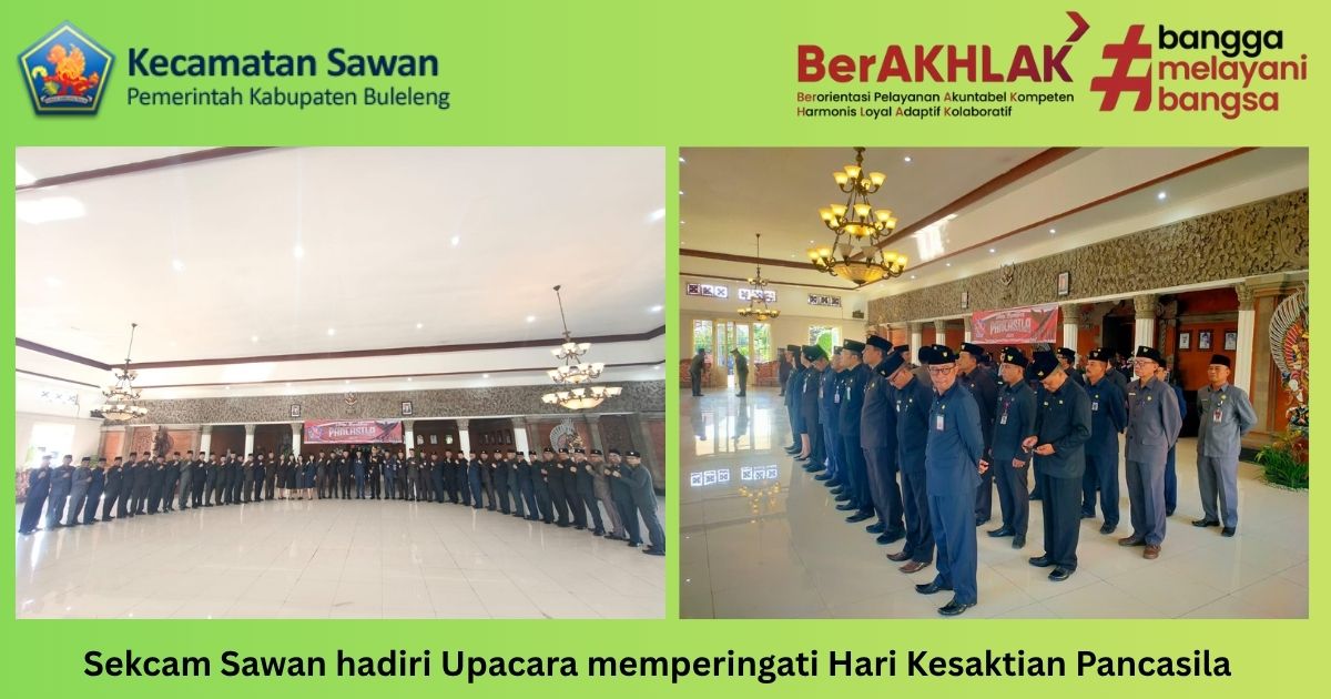 Hari ini rabu, 1 oktober 2025 sekcam sawan Gde Agus Ngurah Suryawan, S.Sos mengikuti upacara dalam rangka memperingati Hari Kesaktian Pancasila tahun 2025 di halaman Kantor Bupati Buleleng.