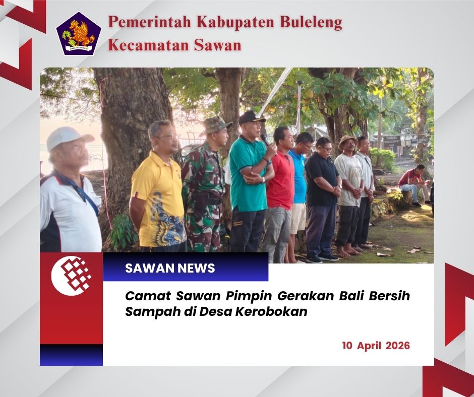 Hari ini Jumat, 10 April 2026, Camat Sawan I Ketut Cantyana, SP memimpin langsung kegiatan Gerakan Bali Bersih Sampah yang dilaksanakan di kawasan Pura Segara, area panggung, pantai, serta sepanjang jalan irigasi subak di Desa Kerobokan, Kecamatan Sawan.