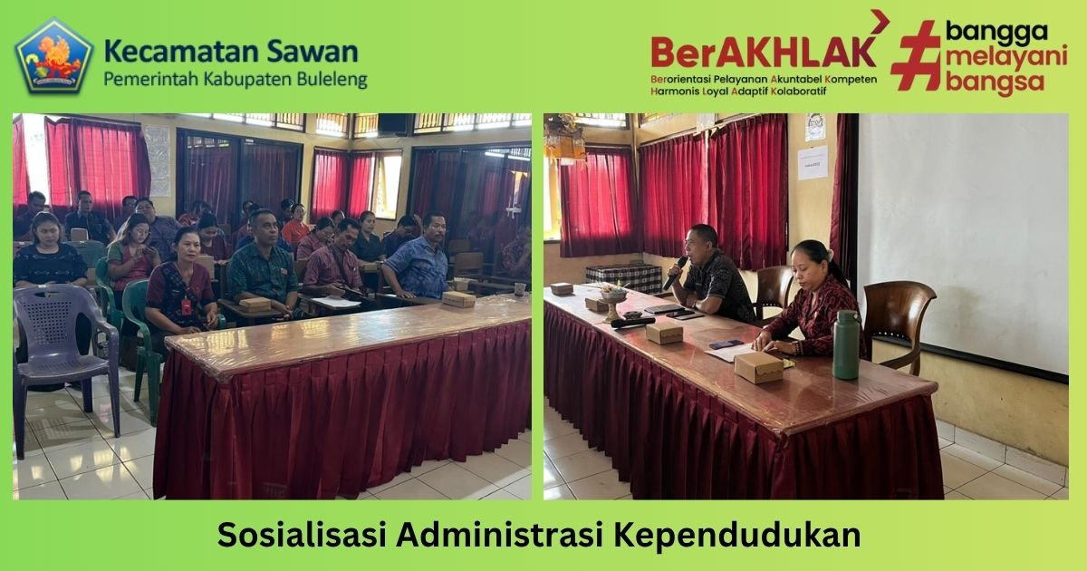 sosialisasi tertib administrasi kependudukan yang diikuti oleh kurang lebih 50 peserta dari 14 desa di kecamatan sawan.