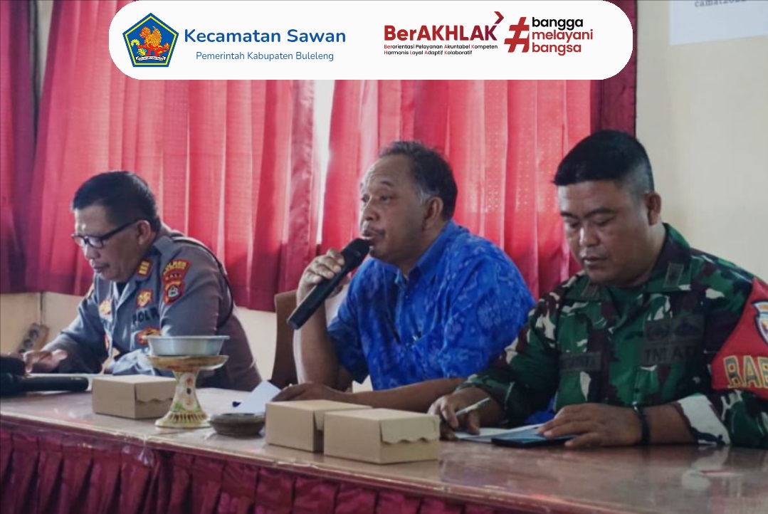 Rapat tersebut dihadiri oleh Kapolsek Sawan, Danramil Sawan, serta perwakilan dari Puskesmas Sawan I dan Puskesmas Sawan II, bersama unsur pemerintah kecamatan dan undangan terkait lainnya.