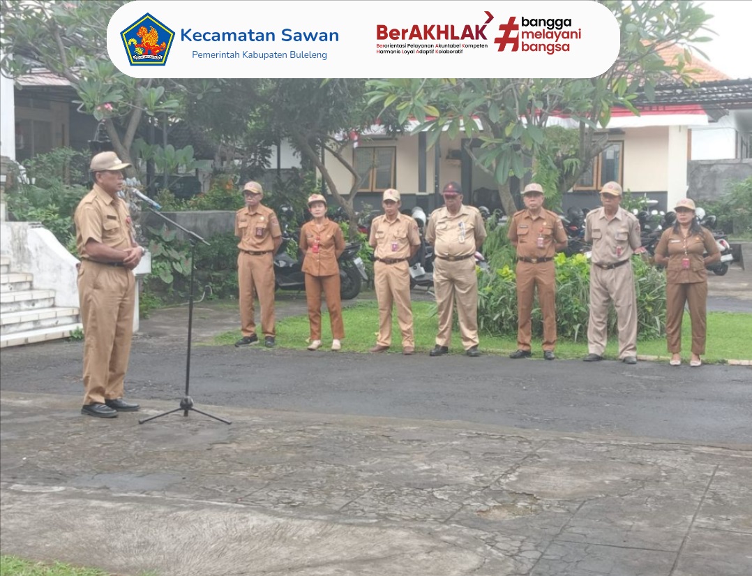 Hari ini Senin, 26 Januari 2026 Camat Sawan, I Ketut Cantyana, SP, memimpin apel pagi yang dilaksanakan di halaman Kantor Camat Sawan. Apel pagi tersebut diikuti oleh seluruh pegawai Kantor Camat Sawan, pegawai PLKB Sawan, pegawai PKH, serta siswa-siswi magang dari SMK N 1 Sawan.
