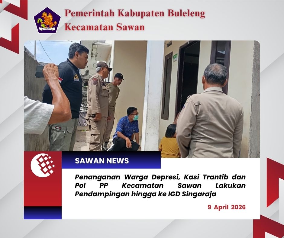 Hari ini Kamis, 9 April 2026, Kasi Trantib dan Pol PP Kecamatan Sawan, Made Sutiastawa, SH bersama staf menindaklanjuti laporan masyarakat terkait seorang warga yang mengalami depresi atas nama Jero Made Sadiarsih, yang berdomisili di BTN Banjar Abasan, Desa Sangsit.