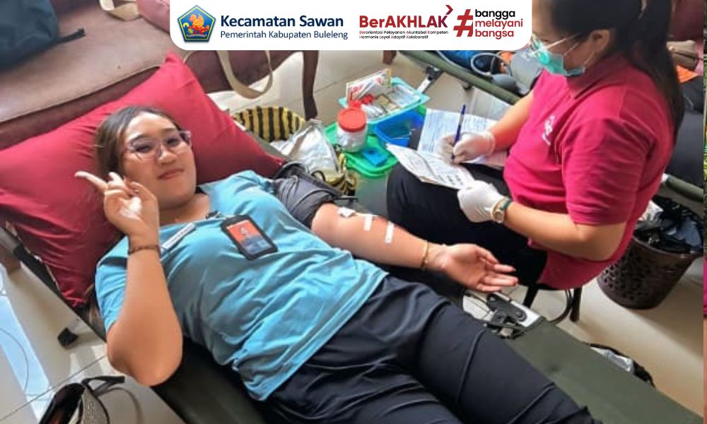 pegawai kantor camat sawan mengikuti kegiatan donor darah yang bertempat di Kantor