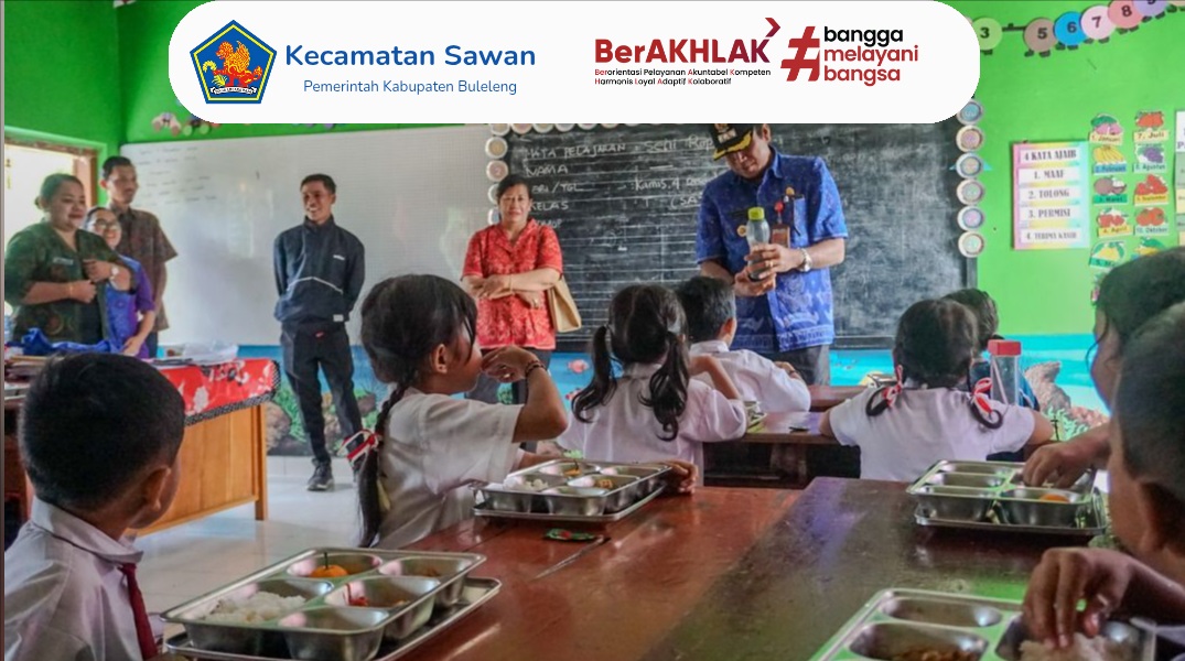 Hari ini Selasa, 9 Desember 2025 Camat Sawan I Ketut Cantyana, SP melaksanakan kunjungan kerja ke SD Negeri 1 Bebetin dalam rangka monitoring pelaksanaan Program Makanan Bergizi (MBG) bagi para siswa. Kegiatan ini bertujuan memastikan bahwa penerimaan makanan bergizi oleh siswa telah sesuai dengan standar gizi yang ditetapkan serta tersaji dalam wadah omprengan bagi setiap siswa.