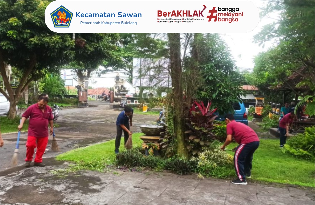 Camat Sawan I Ketut Cantyana, SP menyampaikan bahwa kebersihan lingkungan kerja sangat berpengaruh terhadap kenyamanan dan produktivitas pegawai. Camat Sawan juga mengimbau seluruh pegawai untuk menjaga kebersihan setiap hari, tidak hanya saat kegiatan kerja bakti.