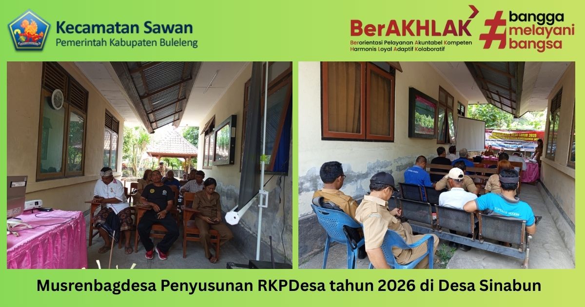 Hari ini senin, 29 september 2025 staf seksi pembangunan I Made Mei Wijaya menghadiri Musyawarah Desa (Musdes) dalam rangka penyusunan Rancangan Rencana Kerja Pemerintah Desa (RKP Desa) Tahun Anggaran 2026. Kegiatan ini berlangsung di ruang rapat Kantor Kepala Desa Desa Sinabun dan merupakan tahapan penting dalam proses perencanaan pembangunan desa yang terarah dan berkesinambungan.