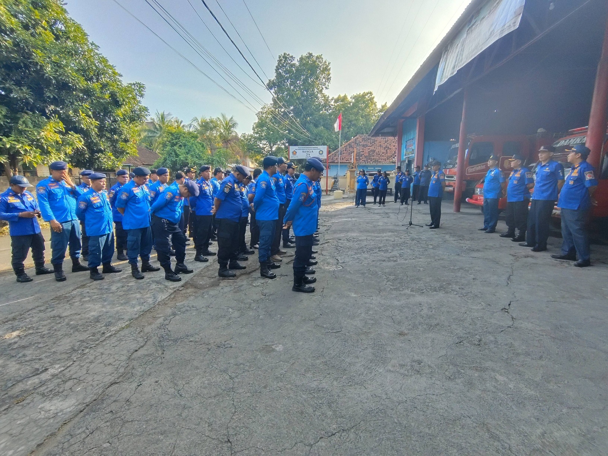 Hari ini Senin, 9 Maret 2026 sebagai bagian rutinitas di awal minggu, Dinas Pemadam Kebakaran dan Penyelamatan kabupaten Buleleng melaksanakan apel pagi yang diikuti seluruh aparatur di Markas Komando Damkar Buleleng. Apel pagi yang dipimpin langsung oleh Kepala Dinas Damkarmat Kabupaten Buleleng I Gede Arya Suardana, AP.MM diisi pengarahan dengan substansi terkait kejadian bencana alam yang terjadi di 5 wilayah kecamatan di Kabupaten Buleleng serta penekanan pelaksanaan tanggap bencana untuk kejadian banjir bandang di wilayah Kecamatan Banjar khususnya di Desa Banjar. Dalam kesempatan itu Kepala Dinas Pemadam Kebakaran dan Penyelamatan menyampaiakan Arah Bupati Buleleng untuk memetakan lokasi-lokasi yang sekiranya perlu dilakukan penyemprotan kembali untuk membersihkan lumpur di lokasi bencana. I Gede Arya Suardana, AP.MM juga memberikan apresiasi atas atensi yang telah dilaksanakan Pasukan Biru Damkar Buleleng dalam mendukung penanganan bencana di beberapa wilayah kecamatan. Apreasiasi juga disampaikan oleh Bapak Bupati atas kecepatan respon Pasukan Damkar Buleleng dalam mendukung setiap upaya penanganan bencana yang terjadi.