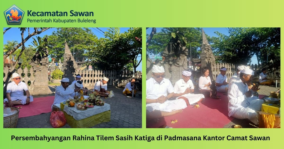 Hari ini senin, 22 september 2025 dalam suasana yang khusuk dan penuh makna spiritual, Camat Sawan I Made Wirama Satria, SE yang didampingi Sekcam Sawan Gde Agus Ngurah Suryawan, S.Sos beserta staf melaksanakan persembahyangan bersama Rahina Tilem Sasih Katiga di Padmasana Kantor Camat Sawan.