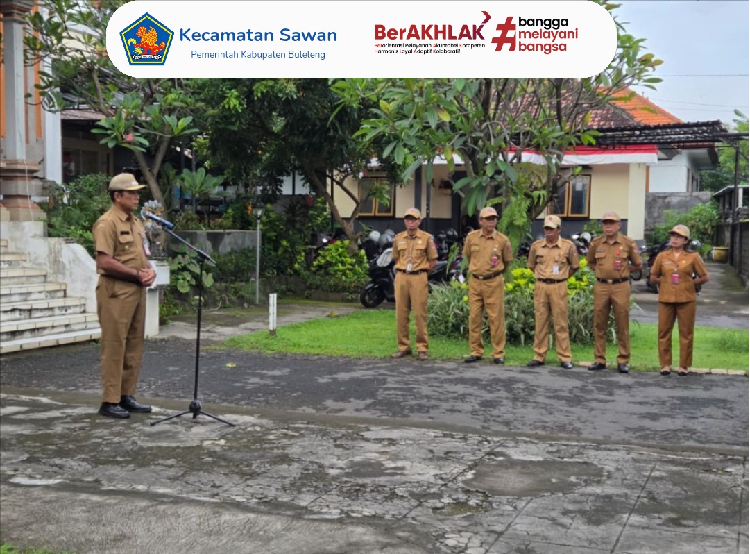 Hari ini Senin, 9 Januari 2026 Camat Sawan, I Ketut Cantyana, SP, memimpin apel pagi yang dilaksanakan di halaman Kantor Camat Sawan. Apel pagi ini diikuti oleh seluruh pegawai Kantor Camat Sawan, pegawai PLKB Kecamatan Sawan, pendamping PKH, serta siswa-siswi magang dari SMK Negeri 1 Sawan.