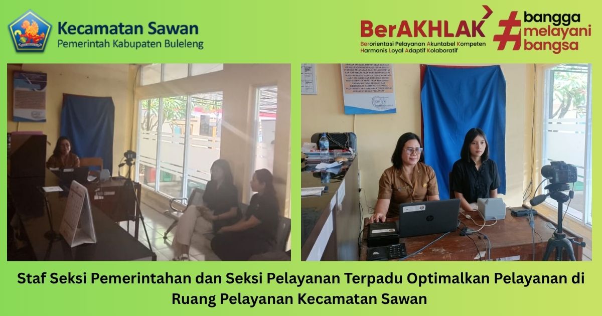 Hari ini senin, 20 oktober 2025 staf Seksi Pemerintahan dan Seksi Pelayanan Terpadu Optimalkan Pelayanan di Ruang Pelayanan Kecamatan Sawan.