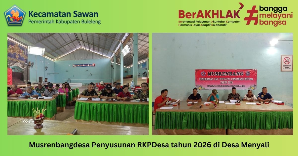 Hari ini jumat, 3 oktober 2025 staf seksi pembangunan I Made Mei Wijaya menghadiri Musyawarah Desa (Musdes) Perencanaan dalam rangka penyusunan Rencana Kerja Pemerintah Desa (RKPDes) Tahun 2026 yang bertempat di Gor Desa Menyali.