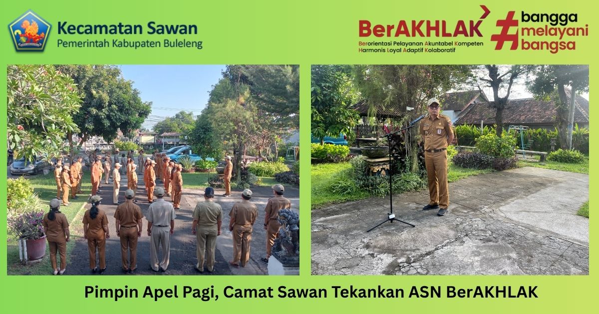 Hari ini senin, 13 oktober 2025 Camat Sawan I Made Wirama Satria, SE memimpin apel pagi bersama seluruh pegawai ASN dan Non ASN di Kantor Camat Sawan. Dalam amanatnya, Camat Sawan menekankan pentingnya implementasi nilai-nilai ASN BerAKHLAK dalam pelaksanaan tugas dan pelayanan publik.