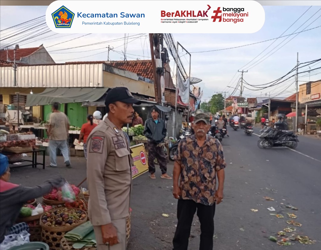 Hari ini Rabu, 11 Februari 2026 Staf Seksi Ketenteraman dan Ketertiban Umum (Trantib) dan Satuan Polisi Pamong Praja (Pol PP) Kecamatan Sawan kembali melaksanakan kegiatan pemantauan di Pasar Desa Sangsit pasca dilakukan penertiban.