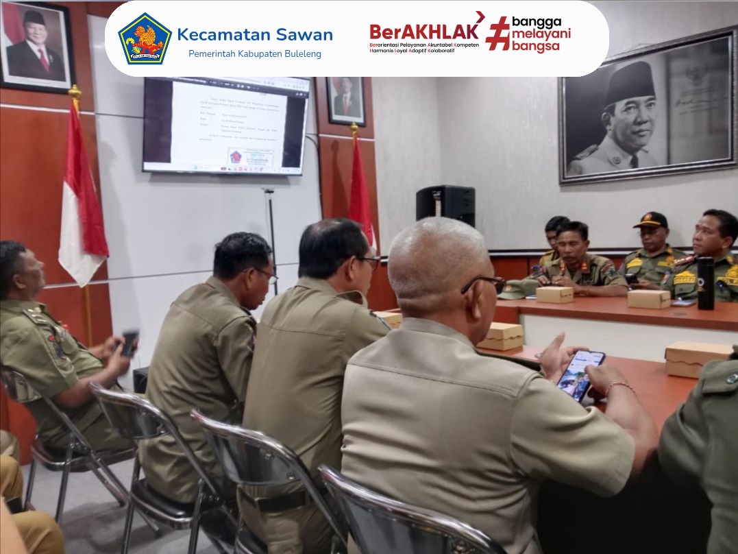 Hari ini senin 8 desember 2025 Kasi Trantib dan Pol PP Kecamatan Sawan I Made Sutiastawa, SH bersama staf bidang perda Wayan Budayasa menghadiri Rapat Koordinasi Pemantauan Perkembangan Politik Kabupaten Buleleng di Ruang Rapat Kantor Badan Kesatuan Bangsa dan Politik (Kesbangpol) Kabupaten Buleleng.