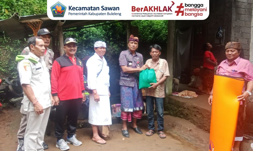 Hari ini kamis, 13 november 2025 Camat Sawan I Ketut Cantyana, SP yang didampingi Kasi Sosial dan Budaya Kecamatan Sawan I Gede Dana Yasa, S.Sos dan staf memberikan bantuan sembako kepada warga masyarakat atas nama Gede Sarimawan langsung di rumahnya di Br. Dinas Lemaya, Desa Lemukih yang atap rumahnya jebol akibat hujan deras yang mengguyur wilayah Desa Lemukih kemarin rabu, 12 november 2025 sekitar pukul 12.30 wita.
