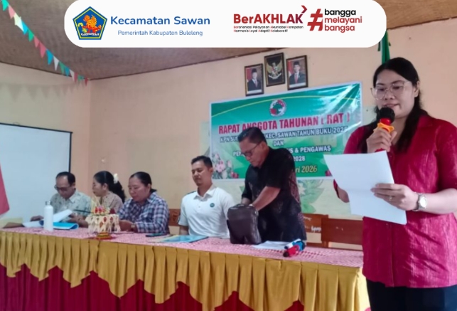 Hari ini Minggu, 8 Februari 2026 Kasi Pembangunan Kecamatan Sawan, Wayan Mahayasa, mewakili Camat Sawan I Ketut Cantyana, SP, menghadiri kegiatan Rapat Anggota Tahunan (RAT) Koperasi Susila Bakti yang diselenggarakan di Aula SD Negeri 1 Sudaji, Kecamatan Sawan, Kabupaten Buleleng.