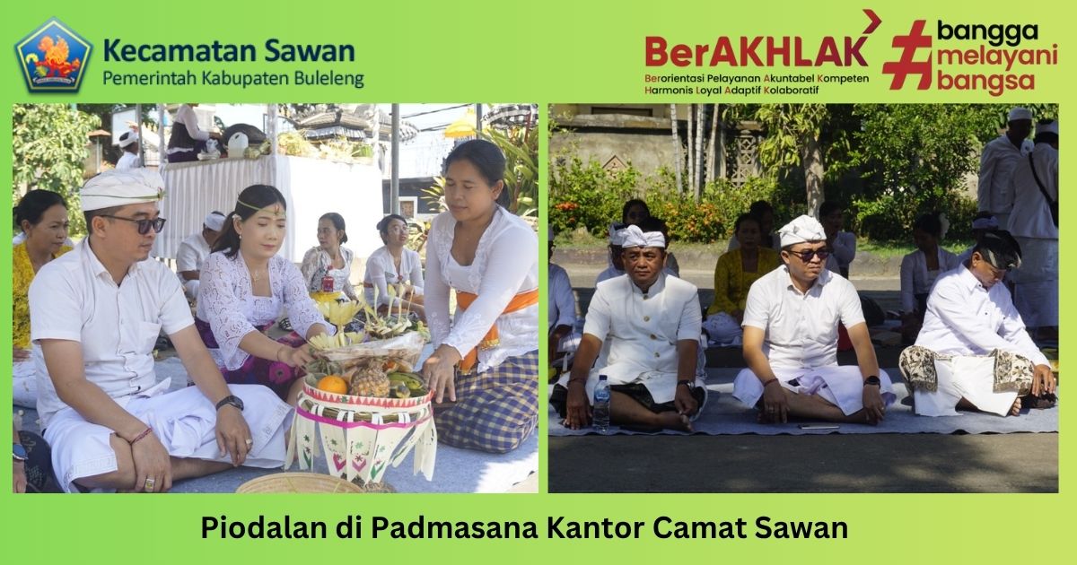 Hari ini senin, 6 oktober 2025 Pemerintah Kecamatan Sawan melaksanakan upacara Piodalan di Padmasana Kantor Camat Sawan yang bertepatan dengan Hari Suci Purnama Sasih Kapat. Acara yang dimulai sejak pukul 08.30 wita ini berlangsung lancar dan khidmat dengan rangkaian Muspayang Bhakti Pujawali.