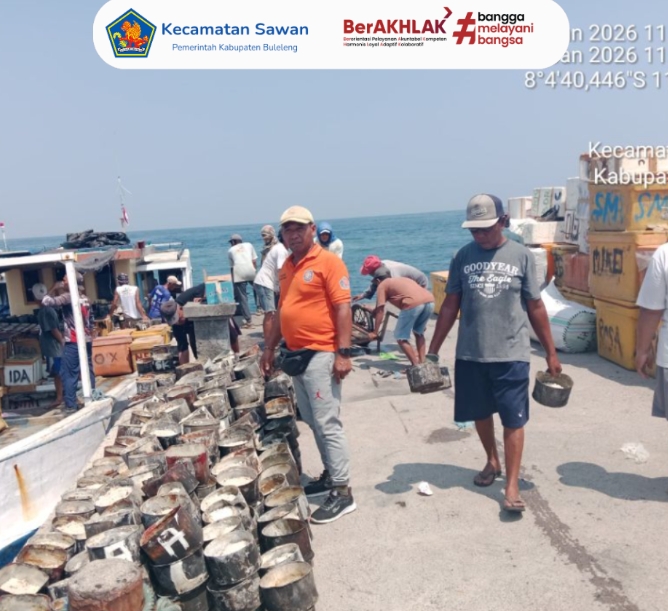 Hari ini Jumat, 30 Januari 2026, pukul 11.09 Wita, staf Seksi Trantib dan Pol PP Kecamatan Sawan melaksanakan pemantauan dan pengecekan kedatangan kapal yang berasal dari Sapeken, Madura. Kapal tersebut sandar di Pelabuhan PPI Desa Sangsit.