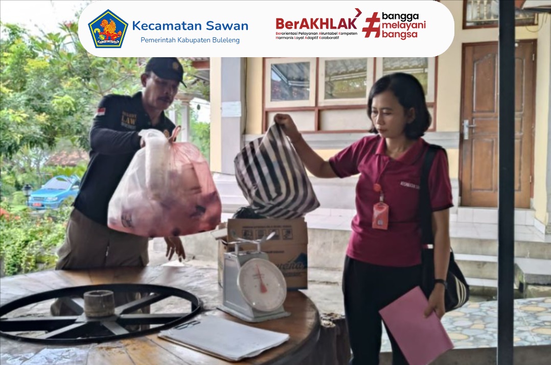 Hari ini Jumat, 6 Februari 2026 Camat Sawan, I Ketut Cantyana, SP, bersama seluruh staf Kecamatan Sawan melaksanakan kegiatan timbang sampah di Sekretariat Bank Sampah Unit (BSU) Kutus, yang berlokasi di Kantor Camat Sawan.
