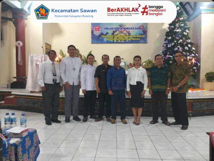 Hari ini Rabu, 24 Desember 2024 Kasi Sosial dan Budaya Kecamatan Sawan I Gede Dana Yasa, S.Sos menghadiri perayaan natal Tahun 2025 yang diselenggarakan di Gereja Galanging Jagat, Desa Galungan. Perayaan Natal Tahun ini mengusung tema " Menjadi Gereja Pembawa Damai " yang menekankan pentingnya peran geraja dan umat dalam menciptakan kedamaian, toleransi serta keharmonisan di tengah kehidupan masyarakat.