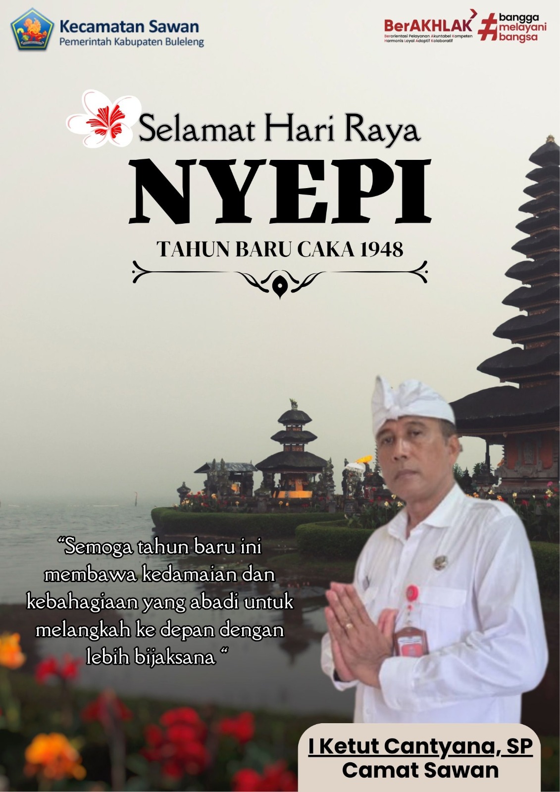 Camat Sawan I Ketut Cantyana, SP bersama seluruh staf Kecamatan Sawan mengucapkan Rahajeng Rahina Nyepi Caka 1948, Tahun 2026.