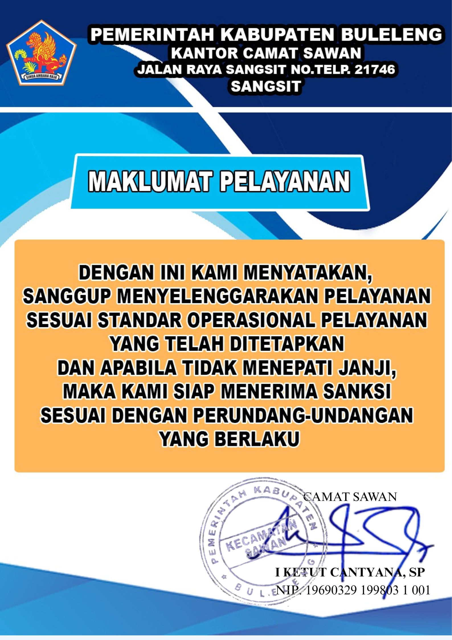 Maklumat pelayanan, adalah salah satu poin penilaian kepatuhan standar pelayanan publik sebagaimana UU No. 25 Tahun 2009 tentang Pelayanan Publik .