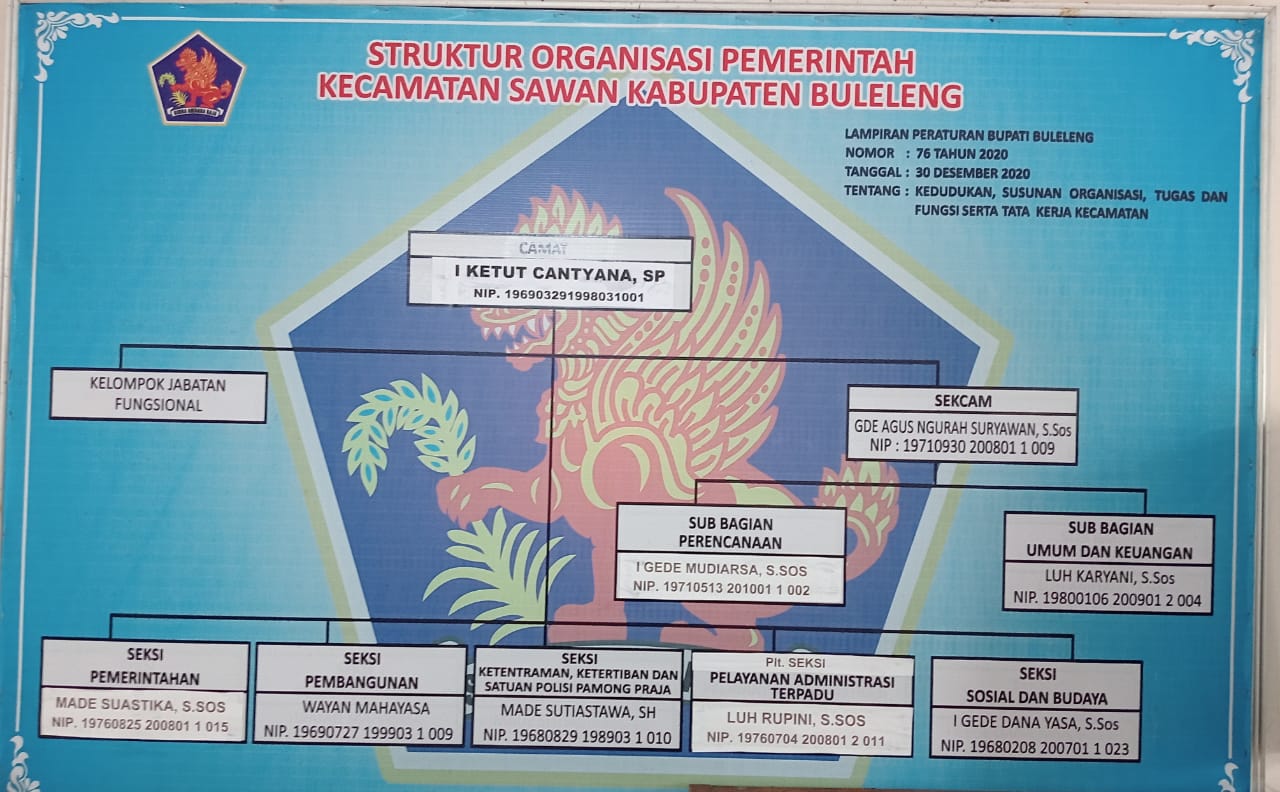 Adapun susunan Organisasi Kantor Camat Sawan Kabupaten Buleleng pada gambar berikut :